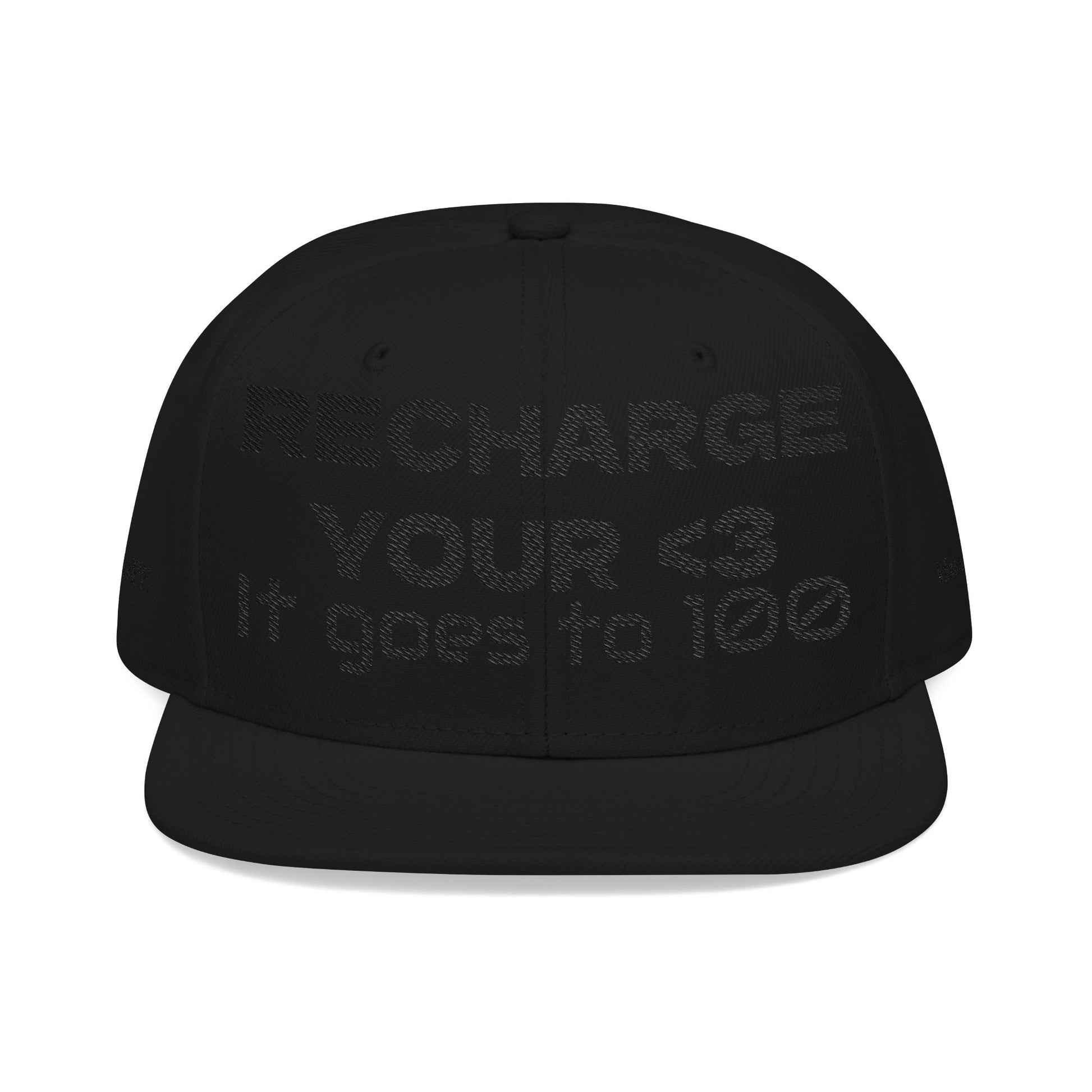 "RECHARGE YOUR <3 It Goes to 100" (Recharge your heart it goes to 100) Snapback Cap, Embroidered Hat, Casual Streetwear, Gift for Him/Her (Many color variants)