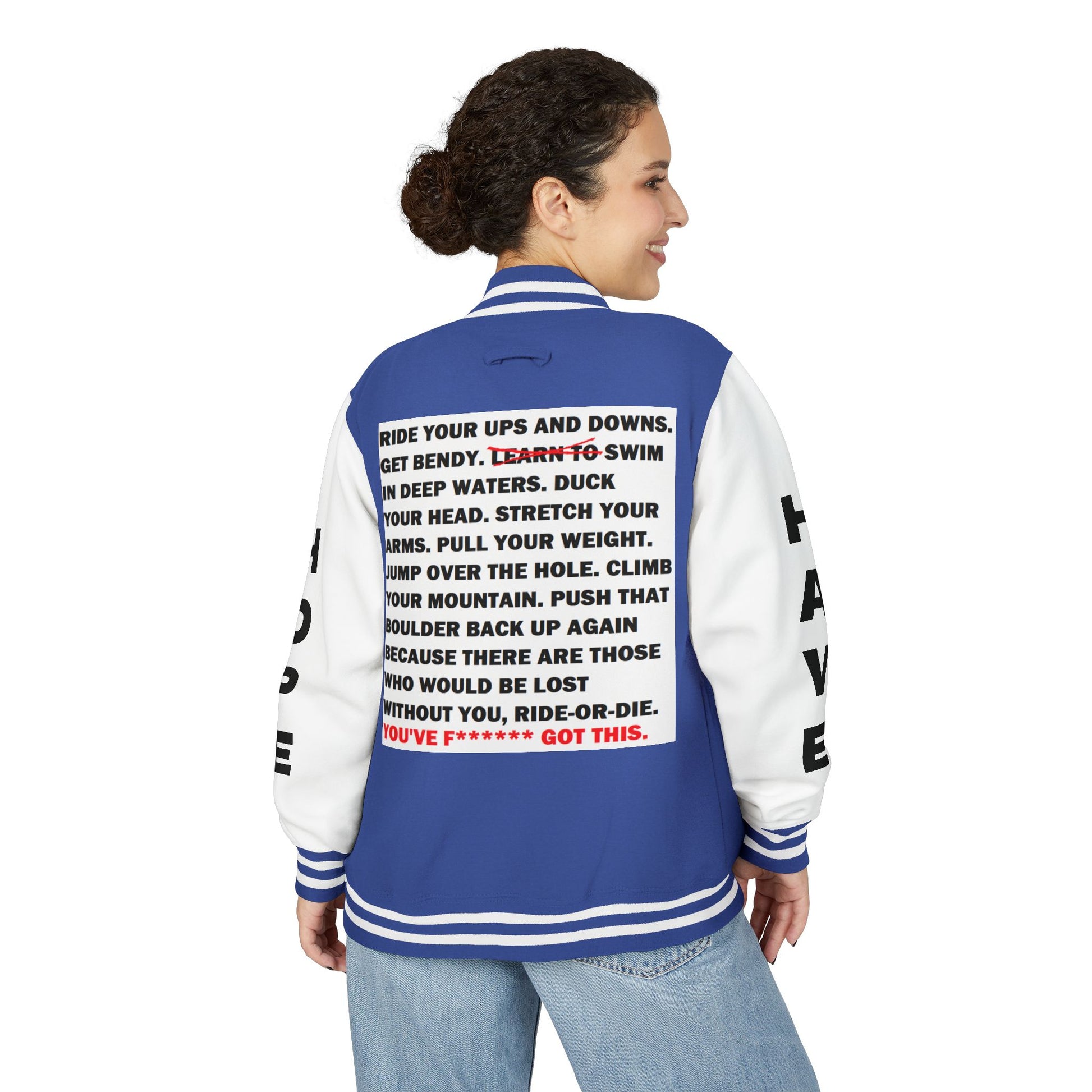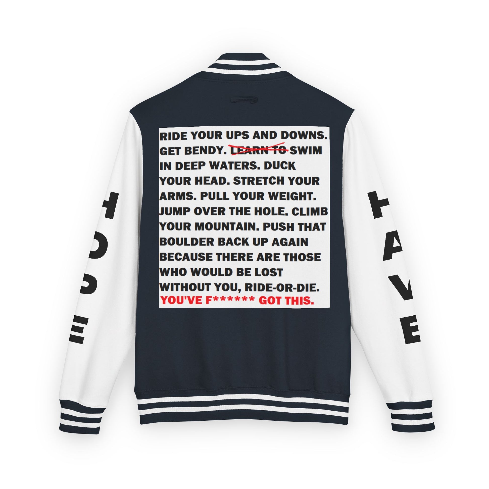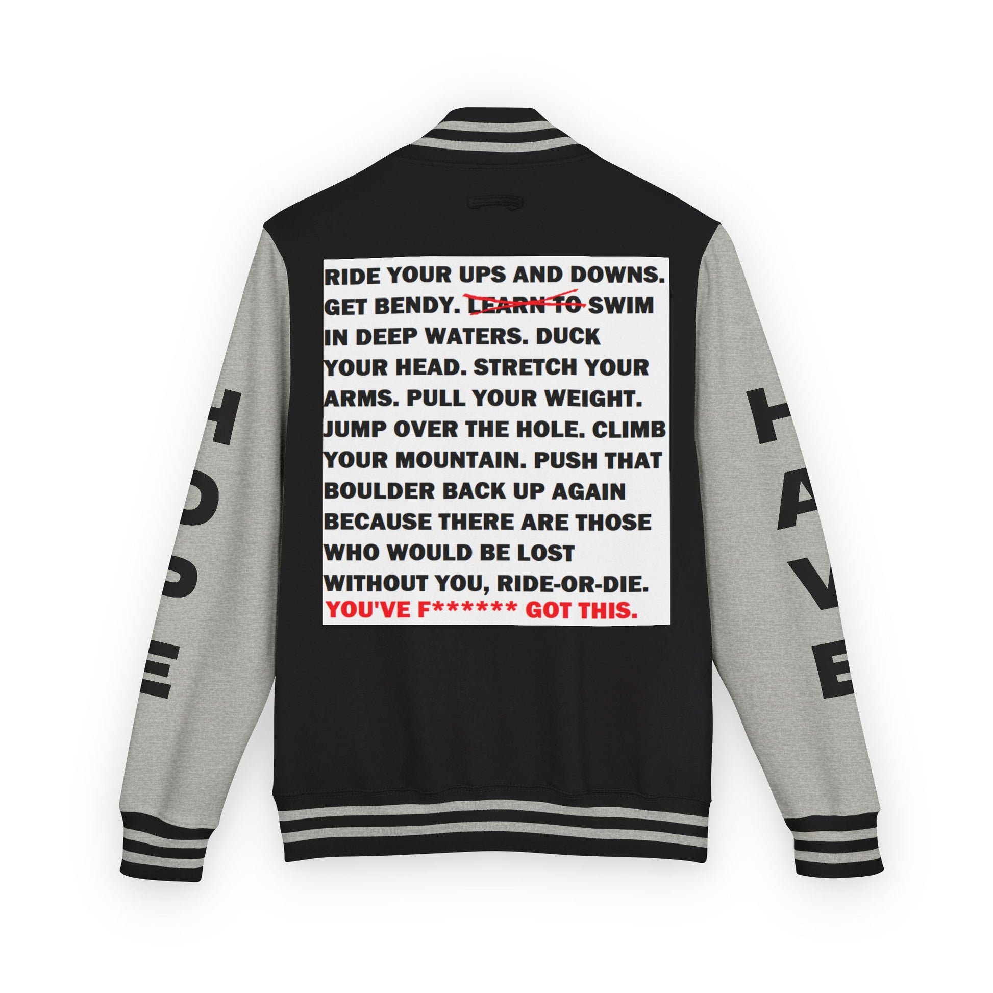Ride-Or-Die Have Hope Inspired Unisex Heavyweight Letterman Jacket - Empowering Message "YOU'VE F****** GOT THIS." Comes in many color variants!