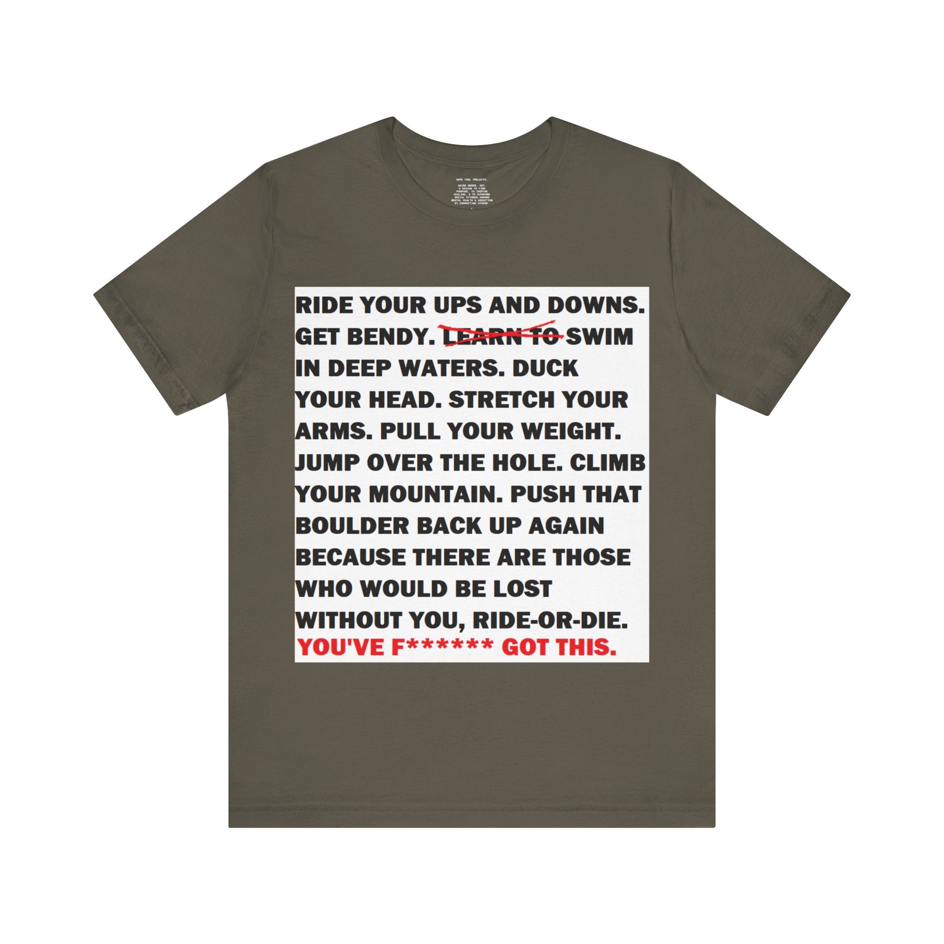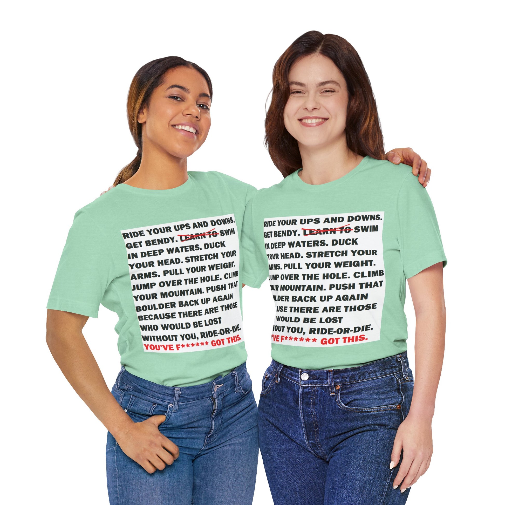 Ride Or Die Motivational Messaging Variants of Green "YOU'VE F****** GOT THIS." Unisex Jersey Short Sleeve Tee (Color Group 3of4)
