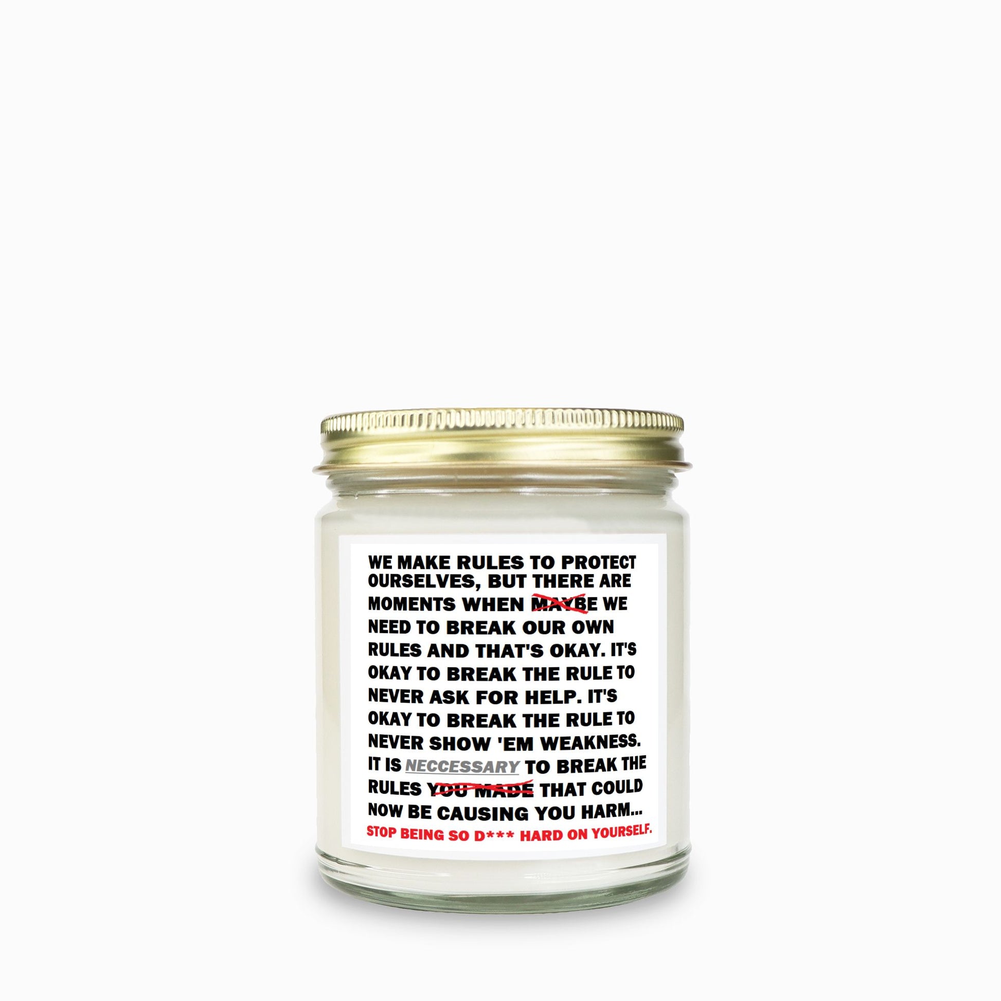 Rule Breaker: "Stop being so D*** hard on yourself." Soy Wax Motivational Candle Clear Jar 9oz