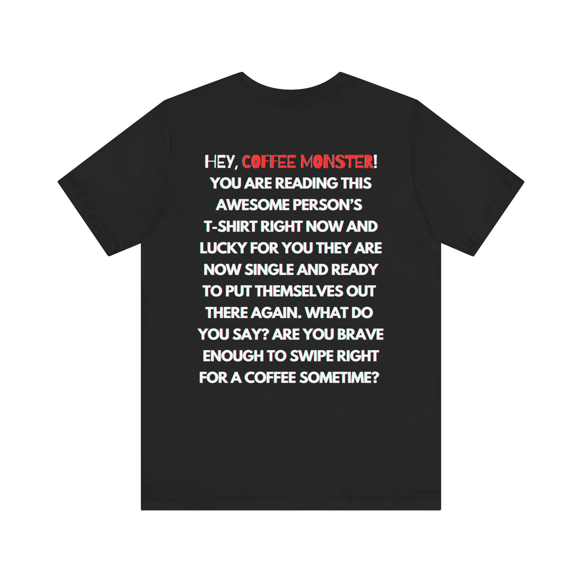 "Single now.... Are you brave enough to swipe right for a coffee sometime?" -Rizz ( Coffee ) Monster Unisex Jersey Short Sleeve Tee