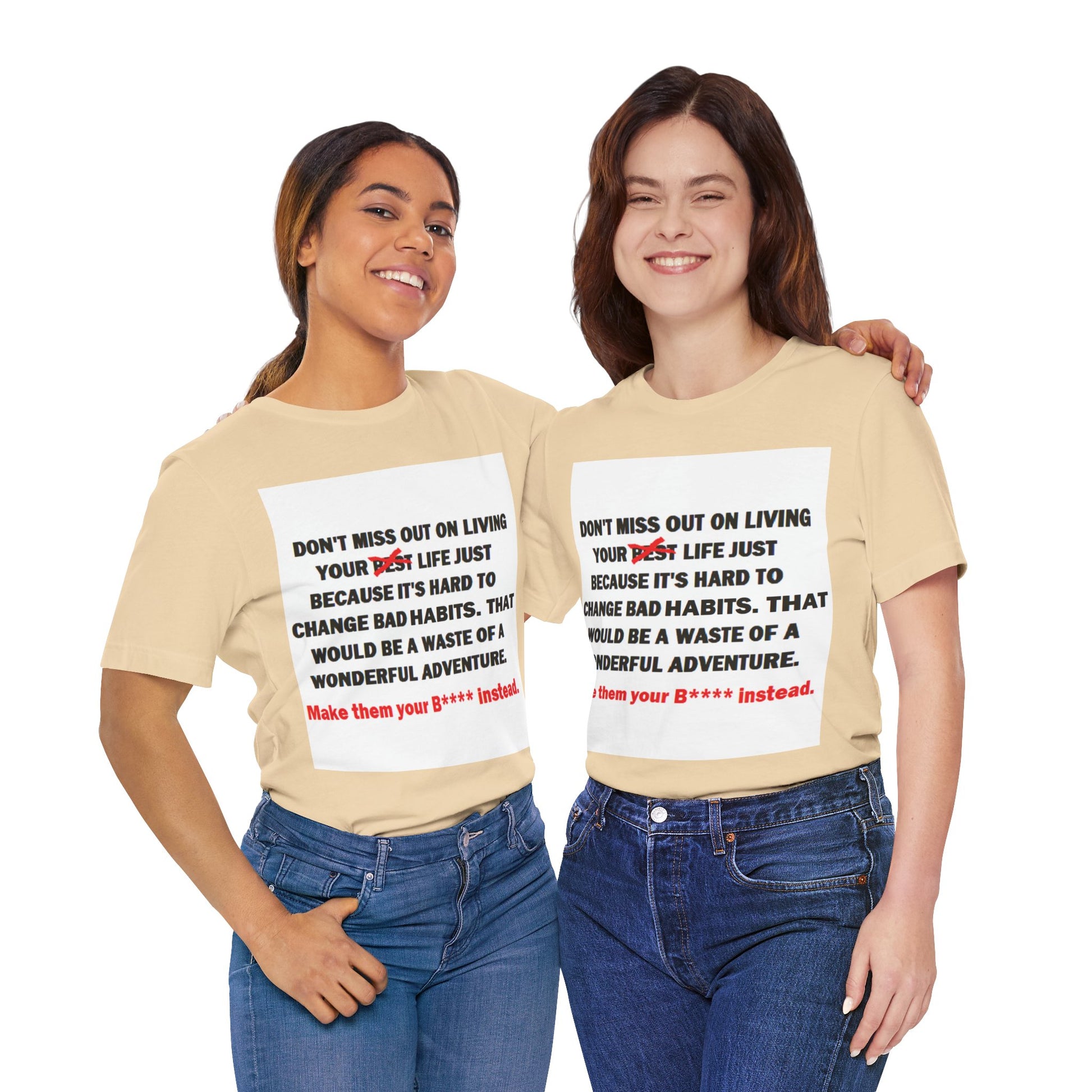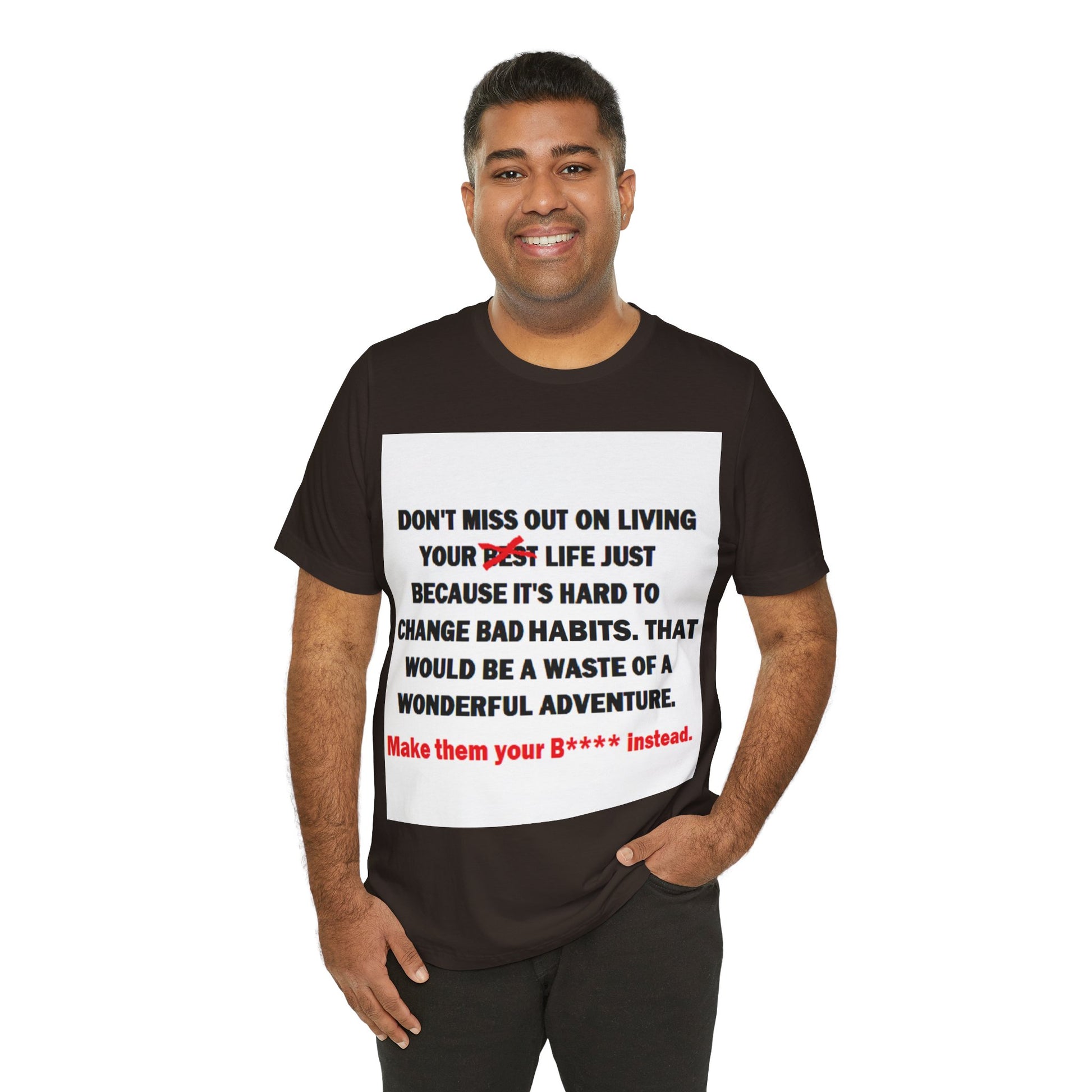 "DON'T MISS OUT ON LIVING YOUR BEST LIFE JUST BECAUSE IT'S HARD TO CHANGE BAD HABITS. THAT WOULD BE A WASTE OF A WONDERFUL ADVENTURE. Make them your B**** instead."