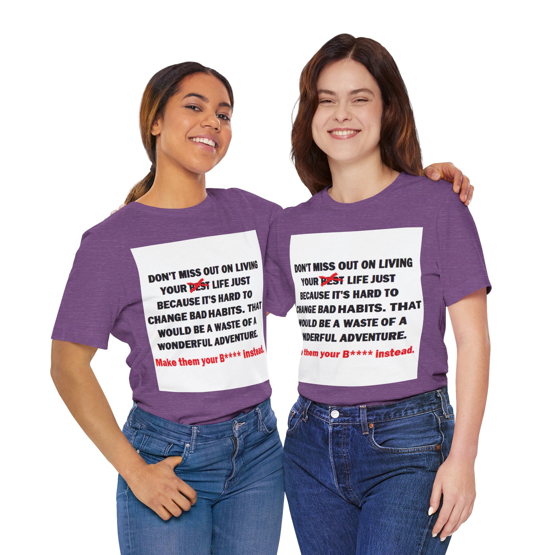 "DON'T MISS OUT ON LIVING YOUR BEST LIFE JUST BECAUSE IT'S HARD TO CHANGE BAD HABITS. THAT WOULD BE A WASTE OF A WONDERFUL ADVENTURE. Make them your B**** instead."